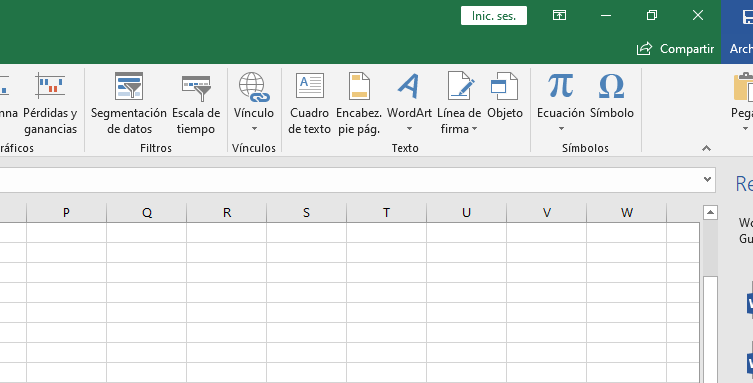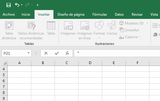 - Ve a la parte de arriba de la hoja de Excel y pulsa en menú de Insertar