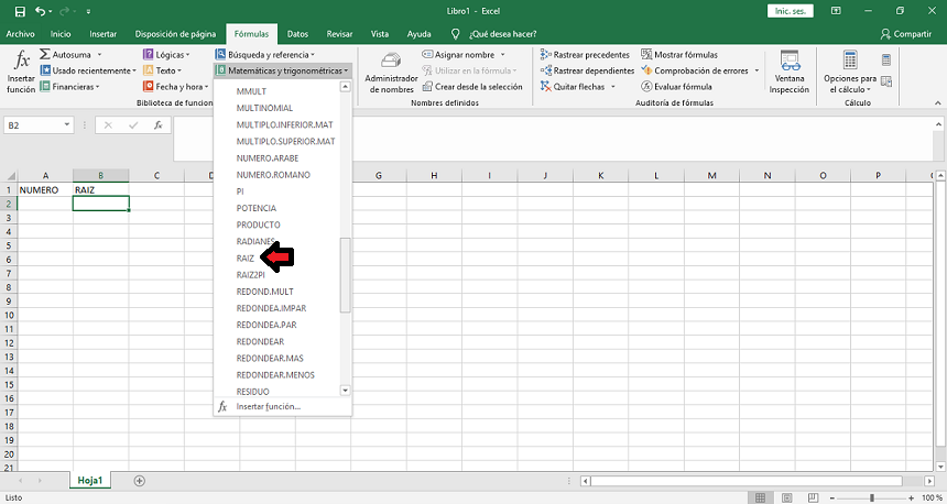 Pasos para poner símbolo raíz cuadrada en Excel 2019 y Excel 2016