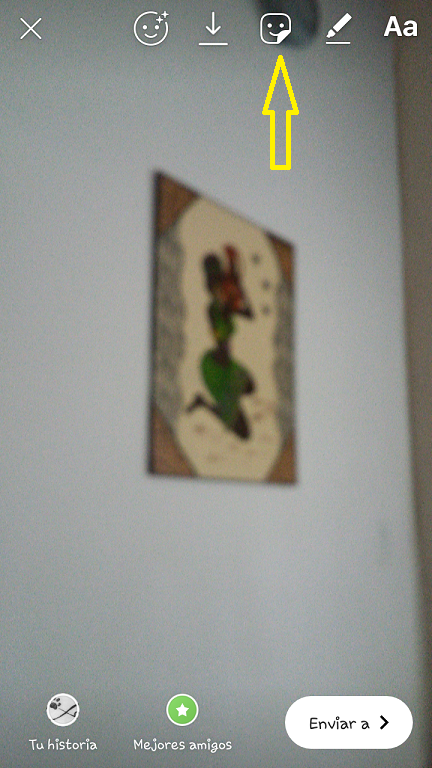 - En este momento vas a buscar el sticker del cuestionario, para ello presiona en la carita cuadrada que se ve en la parte superior.