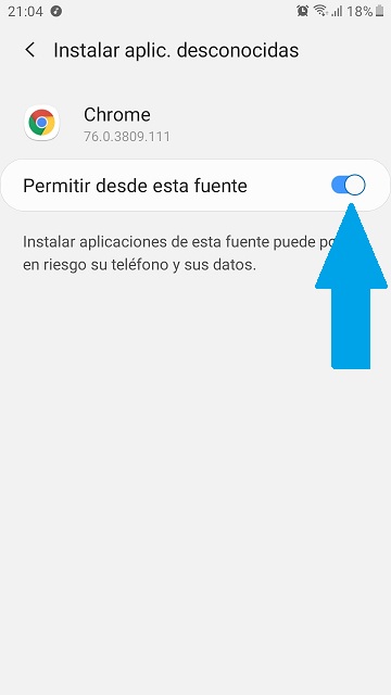 Luego tienes que ir a “Ajustes”>”Seguridad”>”Instalar aplicaciones desconocidas”>”Google” y finalmente habilitar la barra que ahí aparece para que puedas descargar e instalar aplicaciones desde fuentes alternas como Google.