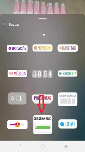 - Aparecerán todos los stickers selecciona el de cuestionario y procede a llenar lo correspondiente a las preguntas que harás.