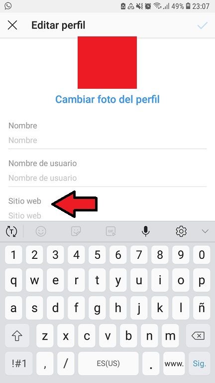 - Como podrás notar, aparecerás en una nueva ventana, en ella se encontrara una barra descrita como “Sitio web”, ahí debes pegar el link de “Thiscrush” que copiaste de tu cuenta.