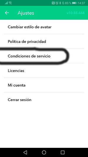 Una vez aquí, entra en “Condiciones del servicio” pulsando sobre esta opciónen la doble pantalla.