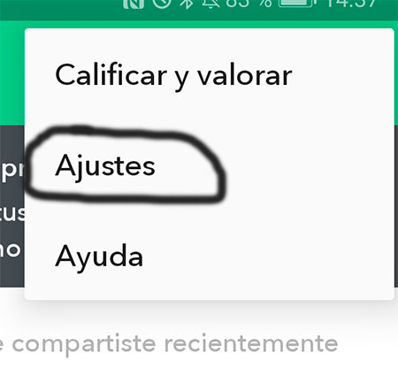 Se va a desplegar una ventana con varias opciones, y en la cual tienes que seleccionar los Ajustes para acceder.