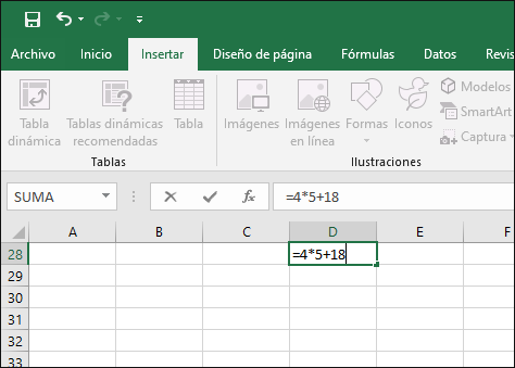 Una manera de usar el símbolo de =, para crear una formula aritmética en una hoja de Excel independientemente de la versión, es la siguiente: