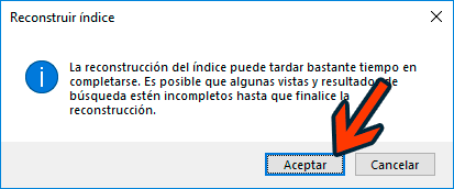 Aquí puedes ver cómo se arregla la indexación cuando da problemas dentro de Windows 10 y que te ayuadará para Outlook también: