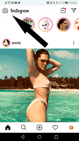 Entra en Instagram y pulsa en el icono de la cámara que vas a encontrar en la esquina superior izquierda.
