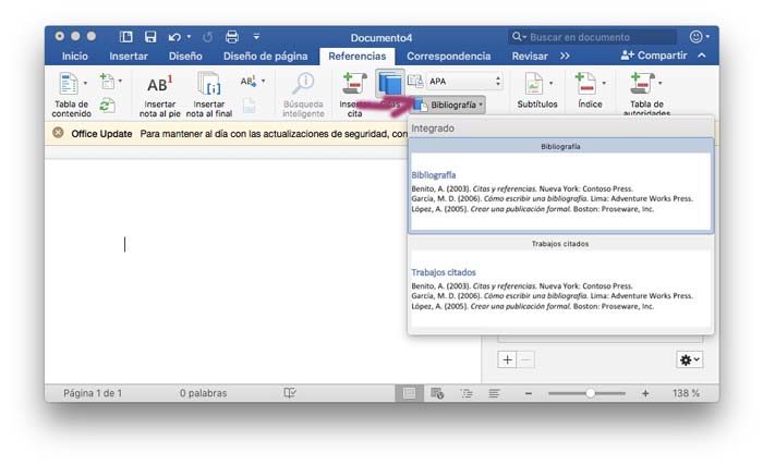 . Ingresa a “Referencia” y selecciona la alternativa “Bibliografía”