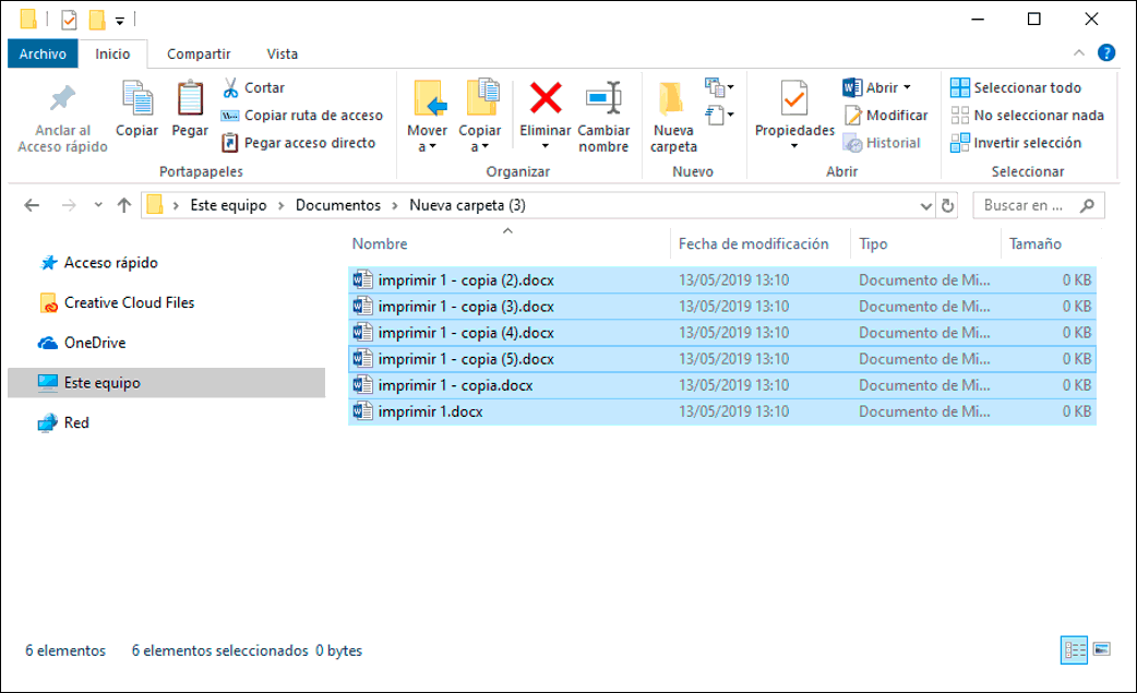 - Si los documentos que deseas imprimir se encuentran esparcidos en localizaciones diferentes de tu ordenador, puede resultar un poco complicado, para poder simplificar esto y llevar a cabo una impresión por lote de archivos, debemos colocarlos todos en una misma carpeta para hacer todo más cómodo.