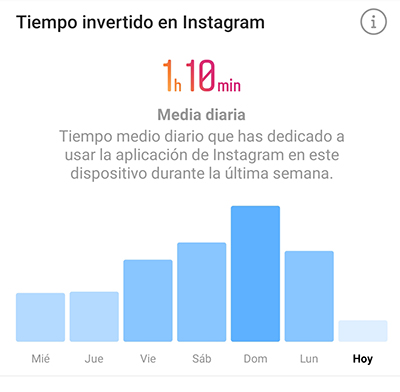 Aquí puedes ver el tiempo que pasas de media a la semana en Instagram, además de verlo por día de Lunes a Domingo. Si es mucho tiempo, ahí tienes la solución jejejej. Saludos!