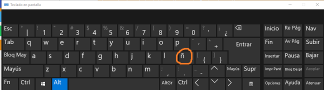 3.- Pulsando la tecla equivalente a la “Ñ”