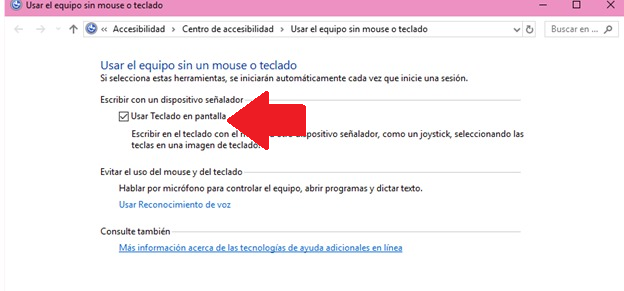 - Posteriormente, vas a observar una ventana con configuraciones generales del teclado, lo que tienes que hacer es habilitar la opción “Usar teclado en pantalla” y, por último, reinicia tu computadora.