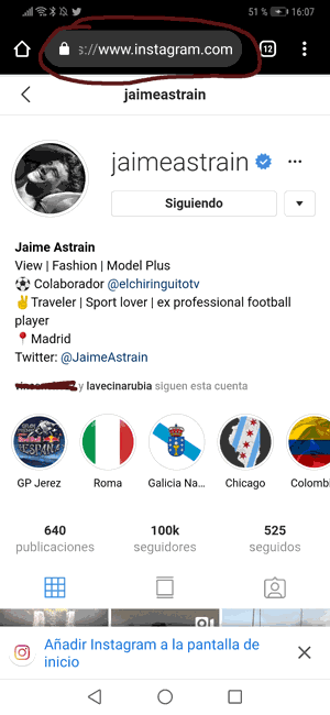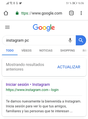 En el caso de que por algún motivo, no puedas copiar el enlace, lo mejor es que trates de entrar en la versión web y hacerlo desde ahí. Para esto debes acceder desde el navegador a Instagram, poniendo "Instagram PC".