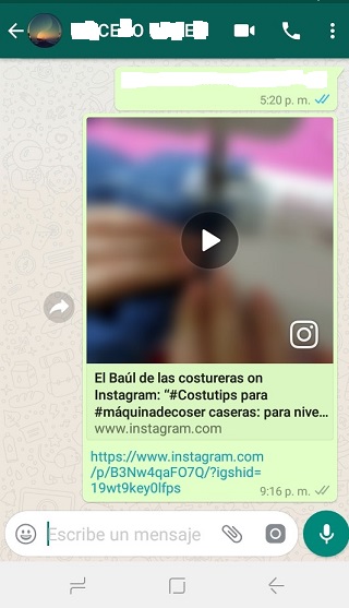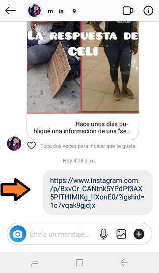 Esta hará que el enlace o url se traslade como un mensaje directo al contacto que seleccionaste. Si deseas enviarlo a un correo, twitter, Facebook etc, el proceso es exactamente el mismo.