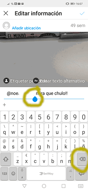 Hay que eliminar la mención poniendo el cursor de escritura delante y pulsando “Atrás” en el teclado.