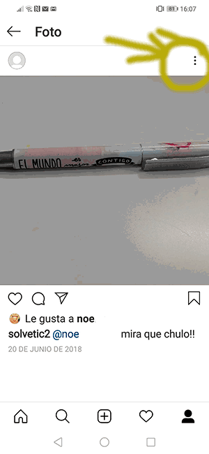 Tienes que ir a la foto en concreto en la que quieres quitar la mención. Aquí pulsar en el icono de arriba a la derecha.