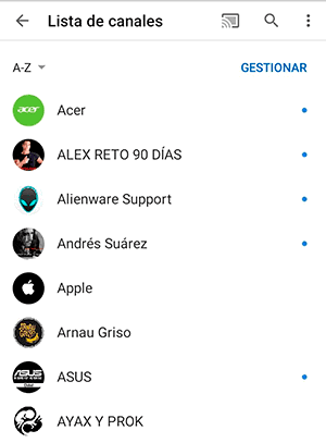 - De este modo se te llevara a la ventana de “Administrar”, donde tendrá que presionar la campana al lado de cada canal para que recibas sus notificaciones.