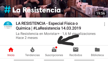 También es común que veas este punto al momento en que entres a la aplicación de Youtube en tu teléfono móvil, el mismo normalmente se muestra en la sección inferior donde dice “Suscripciones” aunque casi siempre este aparece con un color rojo.