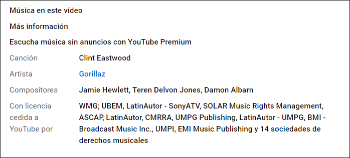 - Música con contenido protegido de terceros que se puede usar. Este tipo de música se ha registrado en YouTube y en algunos casos el propietario permite compartir ingresos cuando el filtro de YouTube lo detecta. Sería lo que aparecerá como licencia cedida a YouTube.