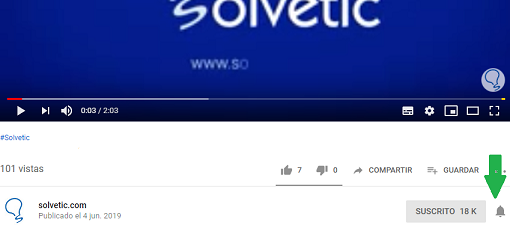 - Si te encuentras viendo un vídeo y deseas activar la alternativa de notificación instantánea, necesitaras pulsar sobre la campanita que se encuentra al lado derecho del botón que dice suscrito, al hacerlo automáticamente recibirás todo el nuevo material que esa cuenta publique.