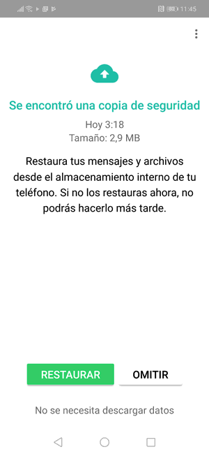 Ahora para recuperar la información será necesario que Instales nuevamente la aplicación WhatsApp pero en el momento de hacerlo, debes seleccionar la alternativa “Restaurar copia”