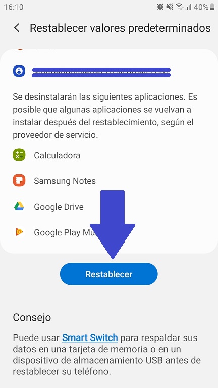 - Como veras al final habrá una pestaña que dirá “Restablecer” la cual debes oprimir.