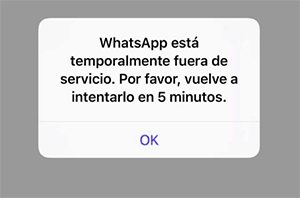 WhatsApp esta temporalmente fuera de servicio por favor vuelve a intentarlo en 5 minutos