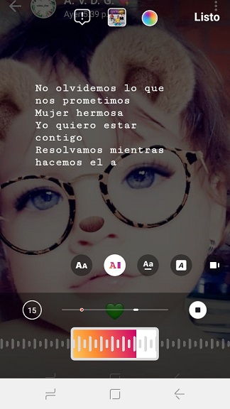 No puedo poner letra en música de historias de Instagram