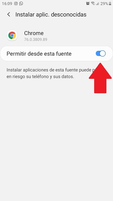 • Después de esto, tienes que hacer click en “Instalar aplicación desconocidas”.