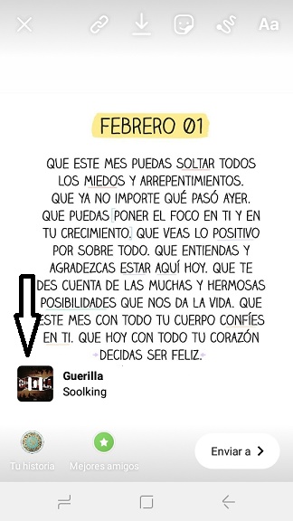 Ahora cuando hayas pulsado en listo, ya podrás mover el sticker de la música allá donde quieras y tambien vas poder hacerlo pequeño pellizcando la pantalla con los dedos si así lo quieres.