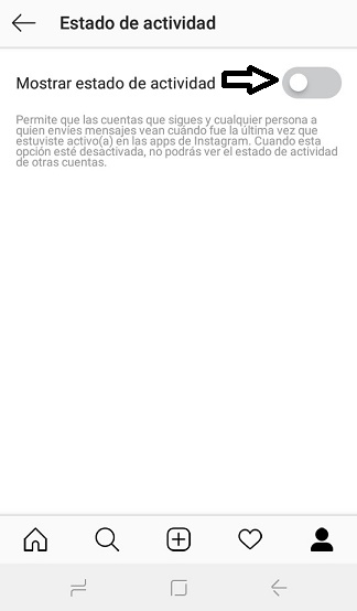 Debes desplazar el botón hacia la izquierda hasta mostrarse de color gris esto indica que se encuentra desactivado y ya no se mostrara la hora de ultima conexión.