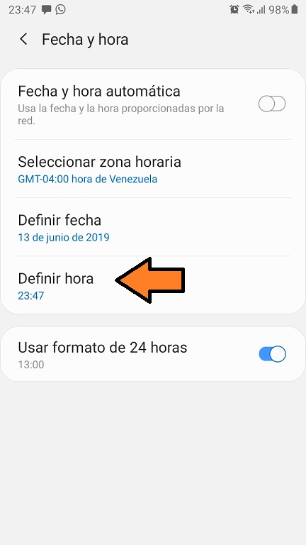 - Como veras cuando lo hagas habrá una alternativa que dirá “Fecha y hora”, debes presionar sobre ella.