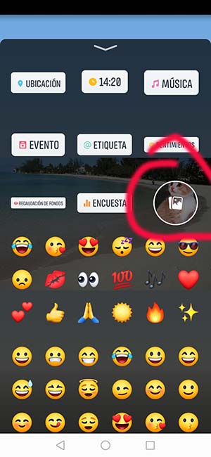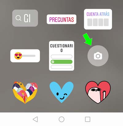 Ahora se mostraran todos los stickers y veras también el icono de una pequeña cámara donde debes hacer clic.