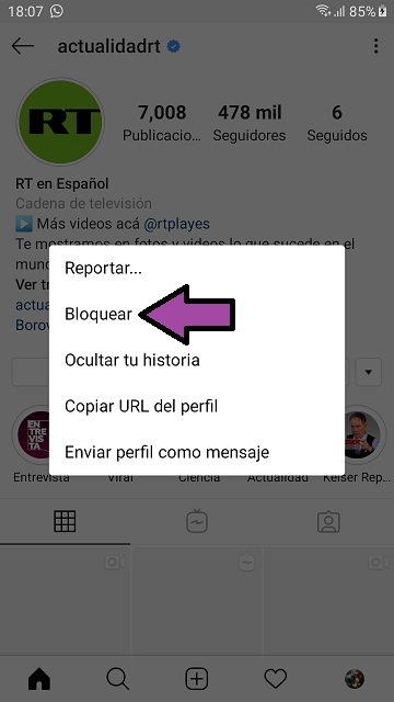 - Ingresa al perfil de esa persona y presiona en los 3 puntos que aparecen en la parte superior derecha de la pantalla, así ingresas al “Menú”