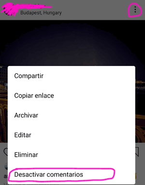 Si no quieres por ejemplo que no solo el sino nadie pueda comentar una publicación, también puedes hacerlo. Para ello entra en esta publicación y despliega los tres puntos de la esquina superior. Aquí selecciona “Desactivar comentarios”