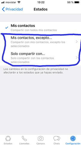 Bloquear estados WhatsApp iPhone