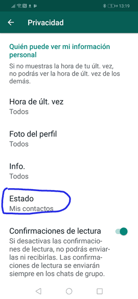 Bloquear estados WhatsApp Android
