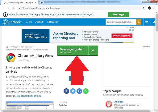 , el cual corresponde a la plataforma de “Softonic”.