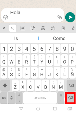 En el caso de que tengas iPhone, tienes que seleccionar la tecla enter ya que en este caso esa tecla no puede tener otra función. Presiona esto en el teclado y vas a cambiar de línea.