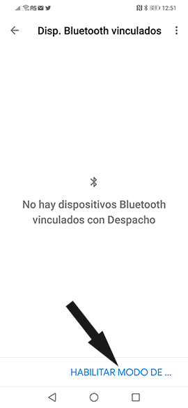- Para terminar, en el nuevo panel que se te mostrara, entra en “Dispositivos Bluetooth vinculados” y ahí haz click sobre “Habilitar Bluetooth” en la parte inferior de tu pantalla.