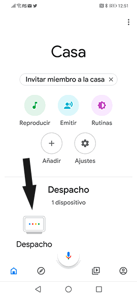 Entra en la App de Google Home y entra en tu dispositivo Google Nest Hub, yo lo tengo configurado como Despacho porque se encuentra en esa habitación pero puede ser que tu lo tengas con otro nombre.