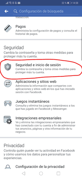 - A continuaci贸n vas a presionar sobre la opci贸n 鈥淪eguridad e inicio de sesi贸n鈥