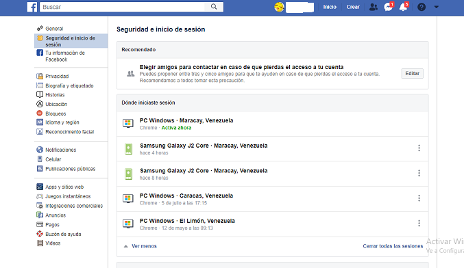 Dentro del apartado de "Donde has iniciado sesi贸n" Seleccionar "Ver todos"