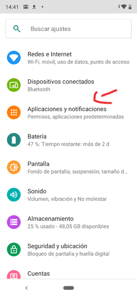 Aunque si igualmente deseas activarlo, te informo que simplemente tienes que entrar en los “Ajustes” de tu teléfono y consecuentemente acceder al apartado de “Aplicaciones y notificaciones” que tendrá un icono naranja con varios puntos blancos en su interior.