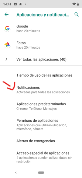 - A continuación se desplegara una ventana con varias alternativas, escoge “Aplicaciones ynotificaciones”