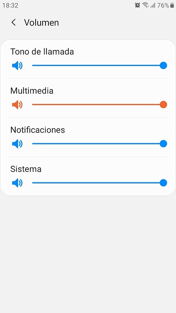 Paso 4: Ahora, veras al lado de la alternativa volumen una serie de líneas horizontales, estas debes desplazarlas hacia la derecha de manera tal que puedas aumentar el volumen de tu Samsung al máximo.