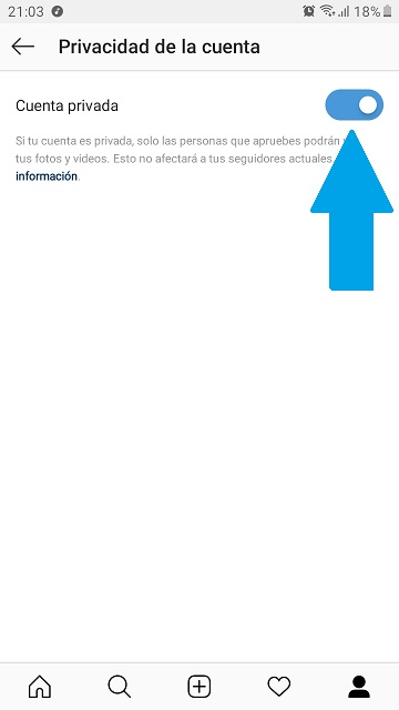Finalmente, te recomiendo que para evitar que dichas personas que no te siguen vean las historias de tu perfil, privatices la entrada al mismo, esto lo puedes lograr de la siguiente forma: