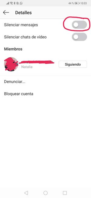 - Verás una opción que pone silenciar mensajes, debes seleccionarla