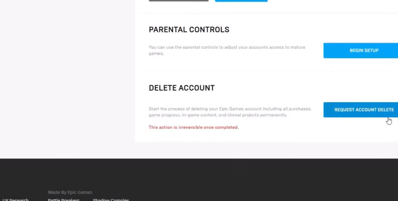 - Debes pulsar sobre la opción “Borrar cuenta” y de manera automática se borra tu cuenta Epic Games y por supuesto con ella la cuenta de Fornite.
