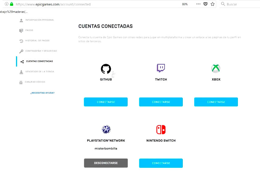 Paso 4: A continuación vas a observar en la parte superior izquierda la alternativa “Cuentas conectadas” al presionarla serás enviado a todas las cuentas que están vinculadas incluyendo la de Fornite.